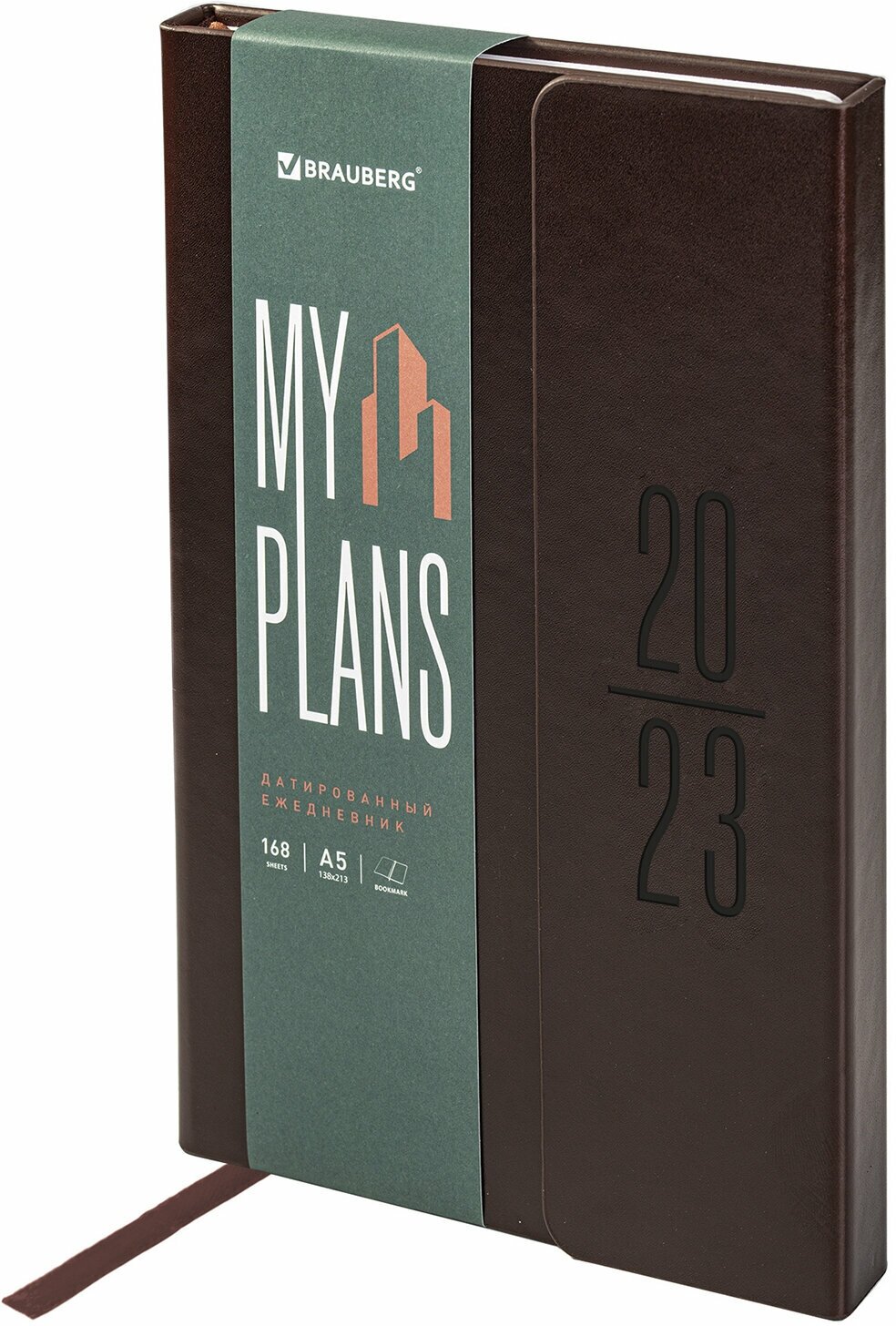 Ежедневник-планер (планинг) / записная книжка / блокнот датированный на 2023 год формата А5 138x213мм Brauberg Towny, под кожу, клапан, коричневый