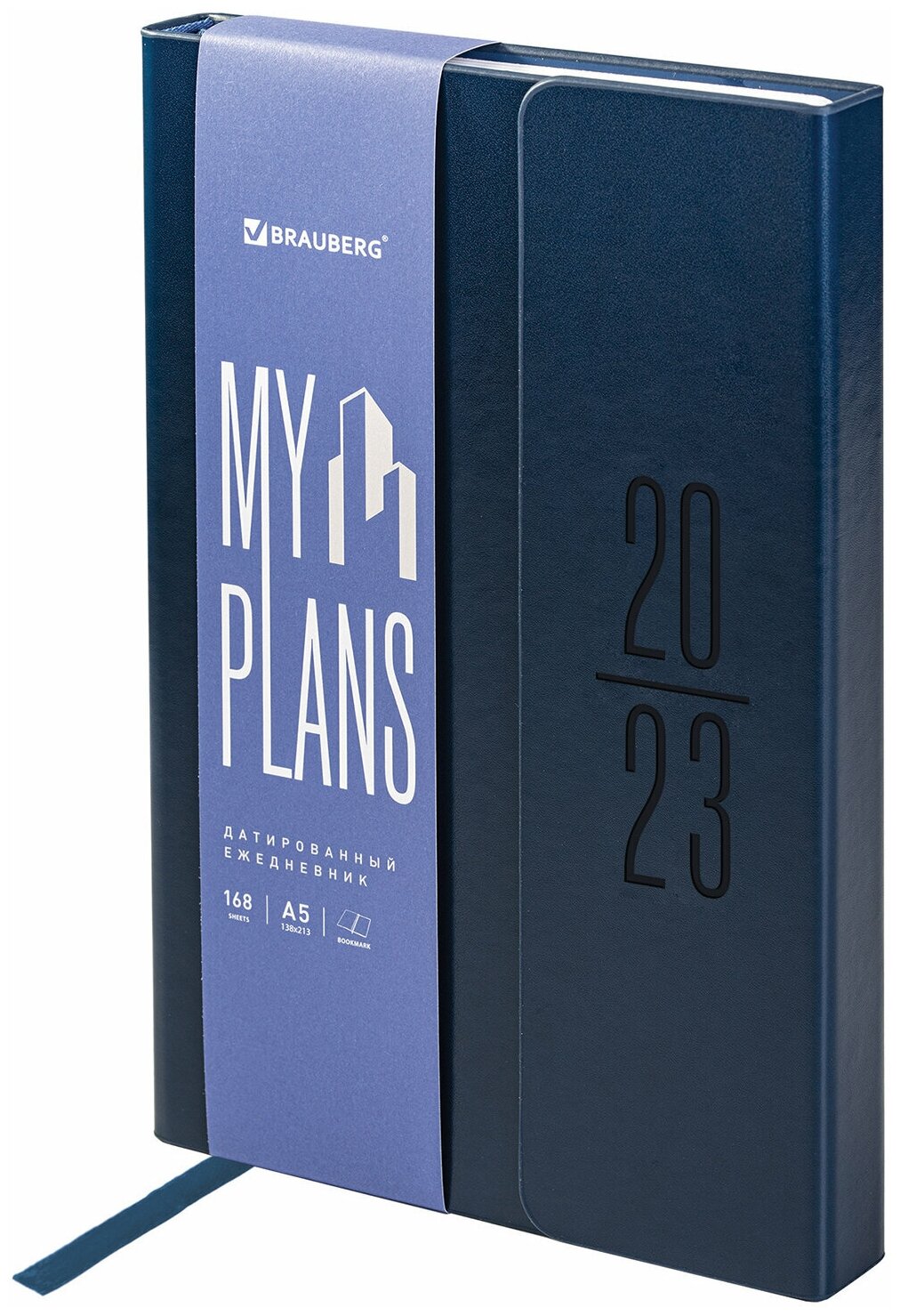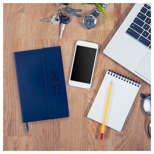 Ежедневник датированный 2023 А5 138×213 мм B-B «Towny», под кожу, клапан, синий, 114009
