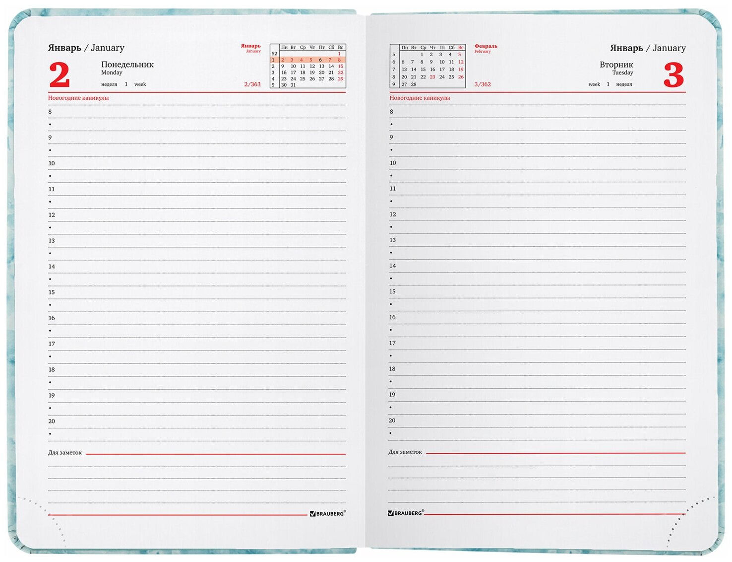 Ежедневник-планер (планинг) / записная книжка / блокнот датированный на 2023 год формата А5 (138x213 мм) Brauberg Marble, под кожу, бирюзовый