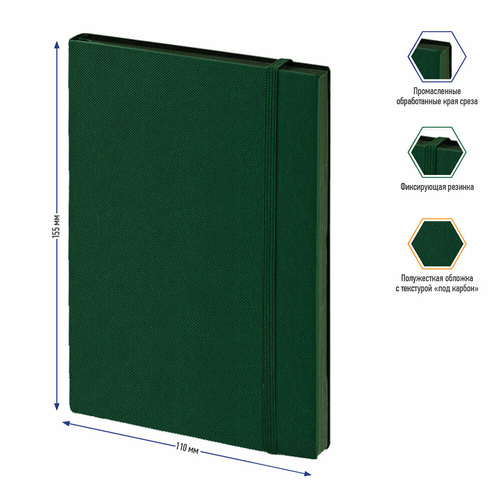 Записная книжка А6 80л, кожзам, Berlingo "Western", черный срез, с резинкой, зеленый
