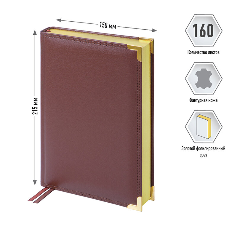 | Особенности | металлические уголки на обложке / перфорация уголков / справочная информация / ляссе / прошивка по периметру обложки / цветной обрез |