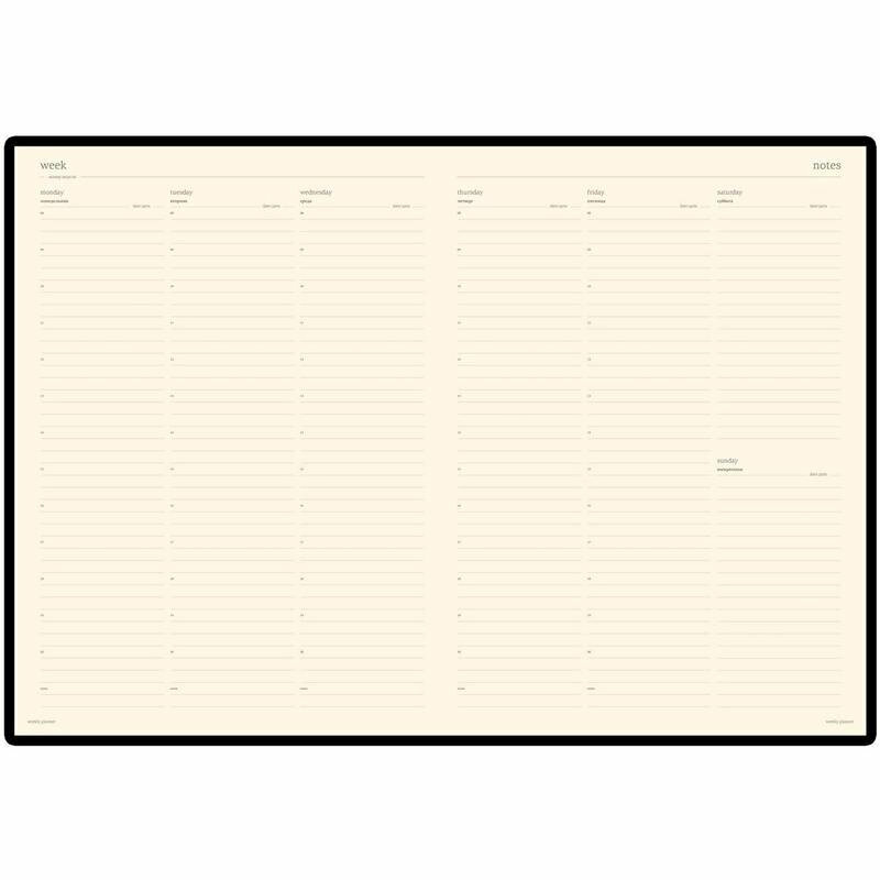 Пользуюсь им с удовольствием уже многие годы!) Не датированный, достаточно тонкий, мягкая обложка, вся неделя перед глазами! |