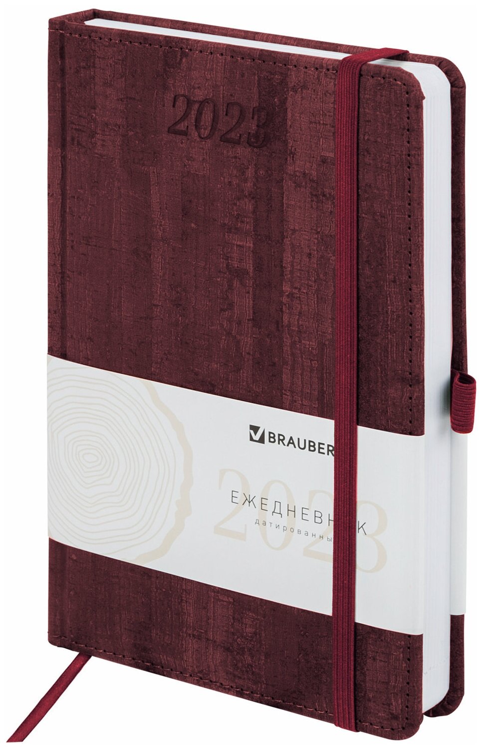 Ежедневник датированный BRAUBERG 2023 А5 138x213 мм "Wood", под кожу, бордовый, 114076