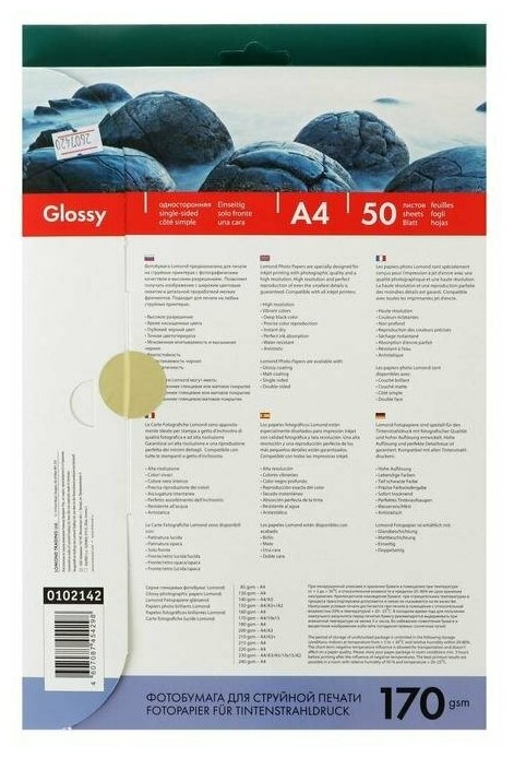 Ниже Вы можете прочитать отзывы на Фотобумага Lomond A4, 0102142 170 г/м2 50 лист. глянцевая односторонняя, белая., ознакомится с подробными характеристиками, посмотреть интересные обзоры и фотографии на Фотобумага Lomond A4, 0102142 170 г/м2 50 лист. глянцевая односторонняя, белая..
