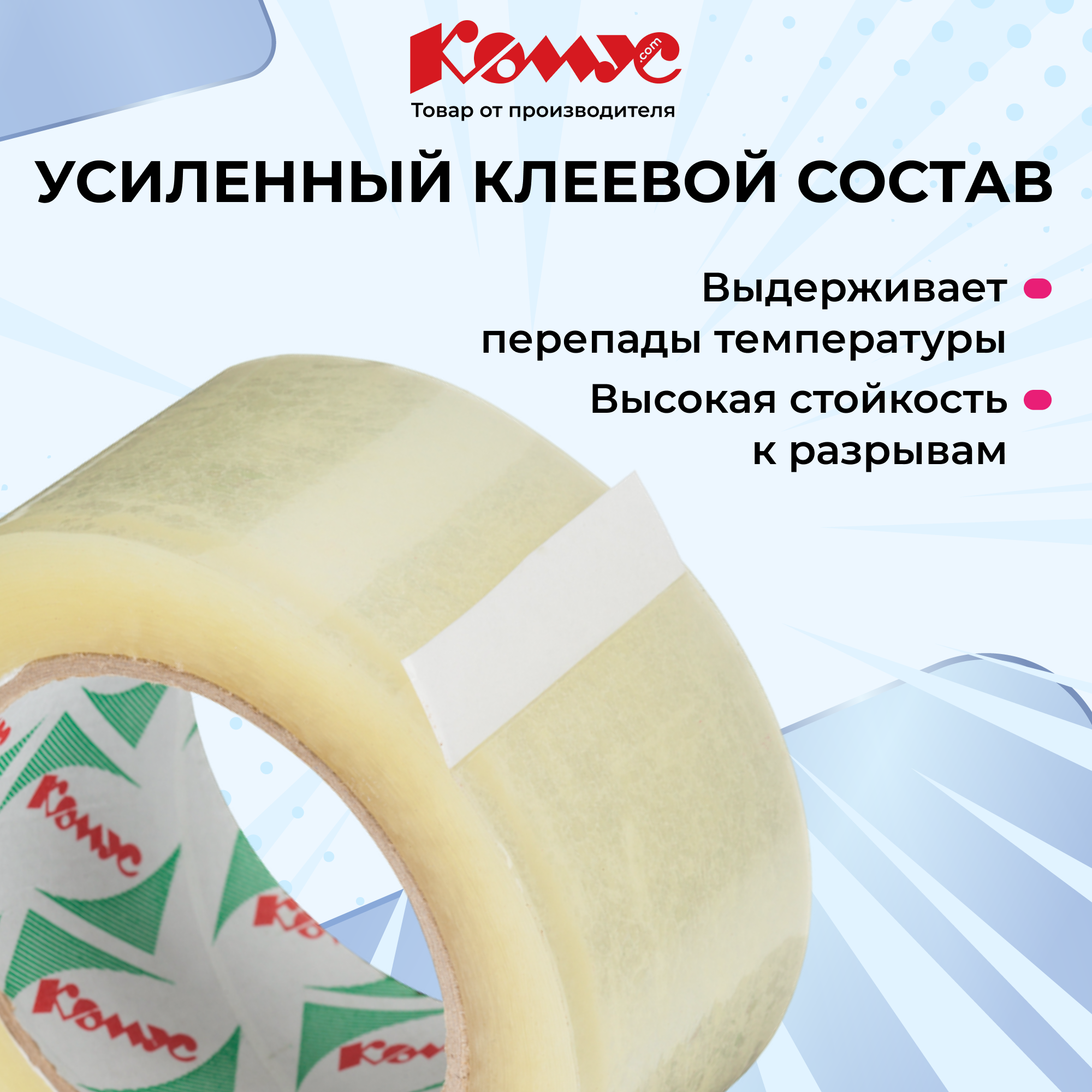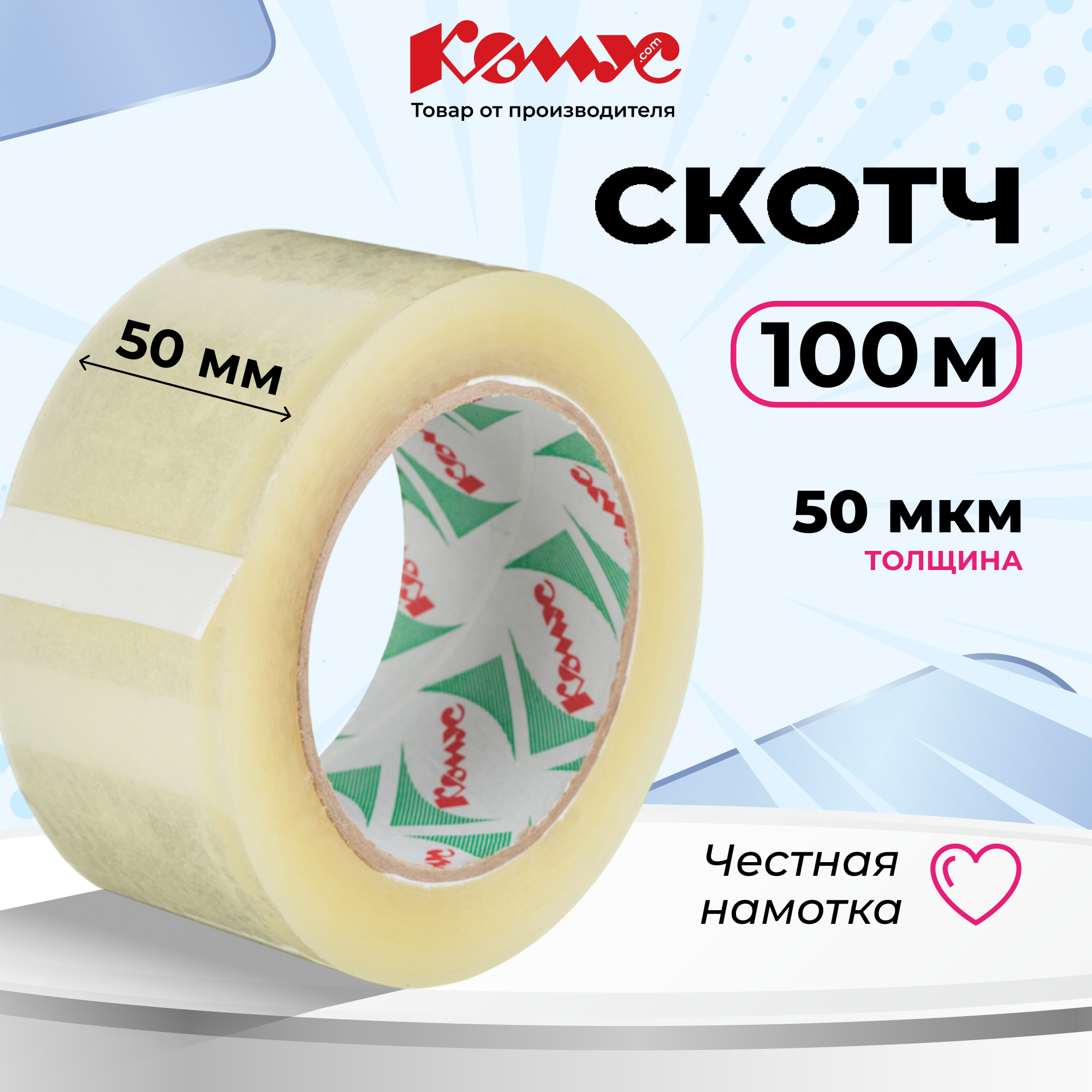 Клейкая лента упаковочная Комус 50мм х 100м 50мкм прозрачная интересное: