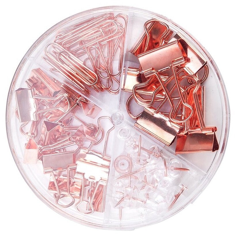 Канцелярский набор Deli 4 отделения, кнопки, скрепки, зажимы, розовое золото (78553)