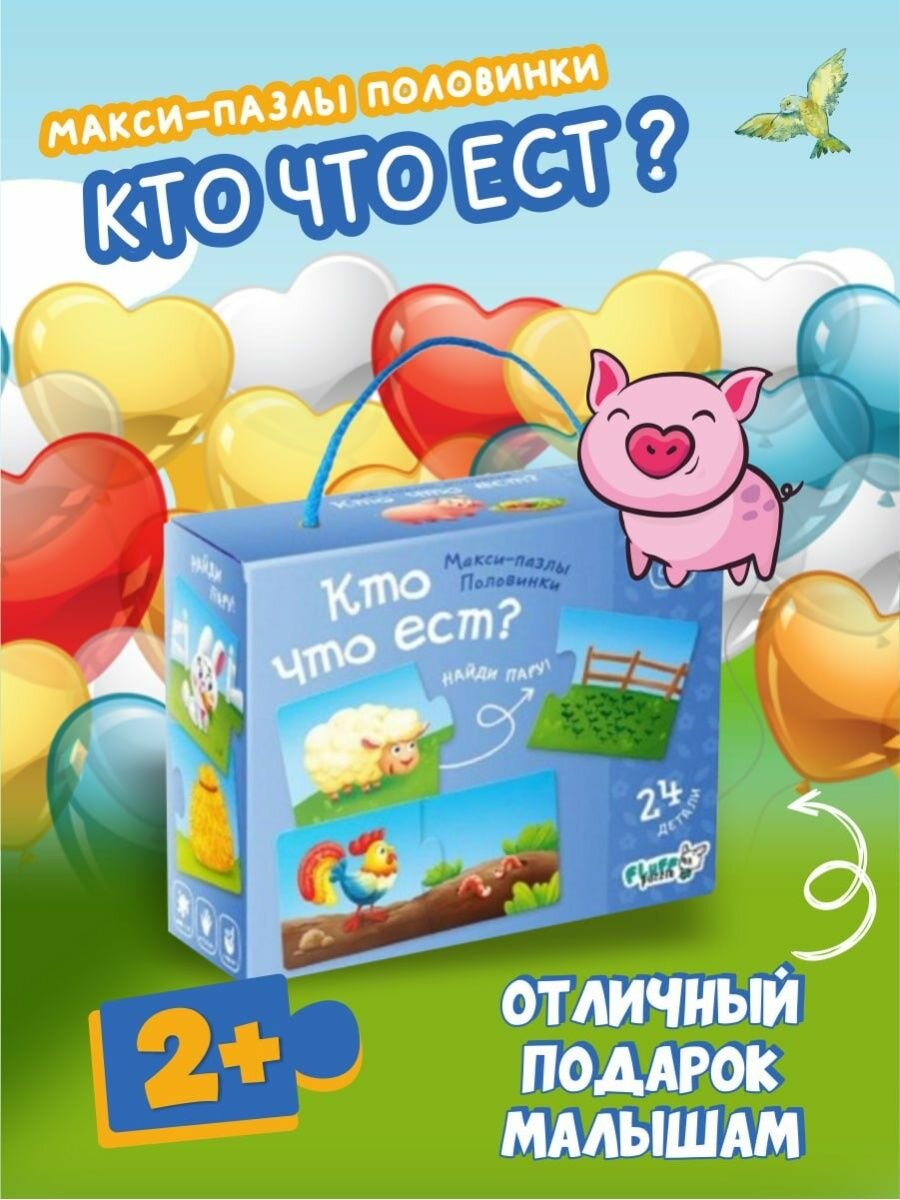 Макси-пазлы. Половинки. Кто что ест? (24 детали)