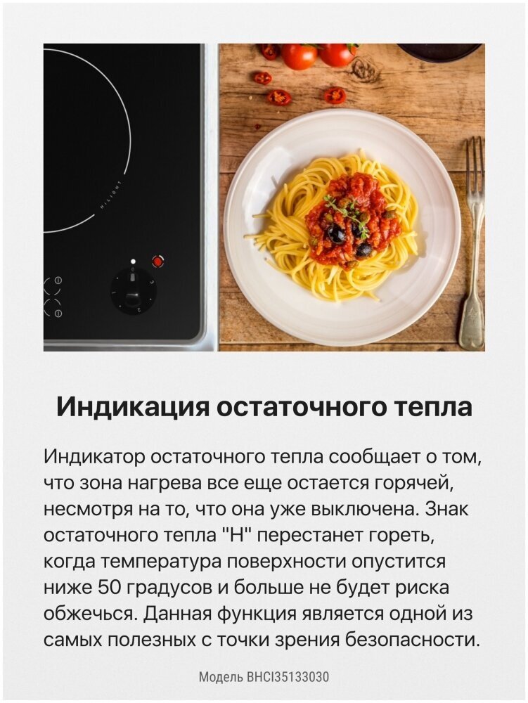 | Безопасность | защитное отключение конфорок / индикатор остаточного тепла |