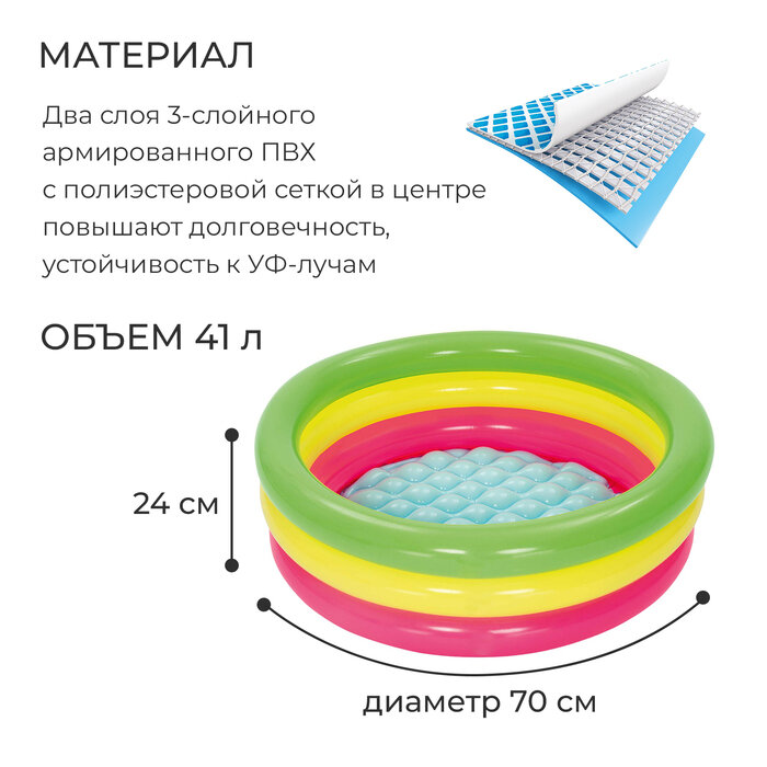 Круглый надувной бассейн Bestway, 70х24 см, мягкий, разноцветный