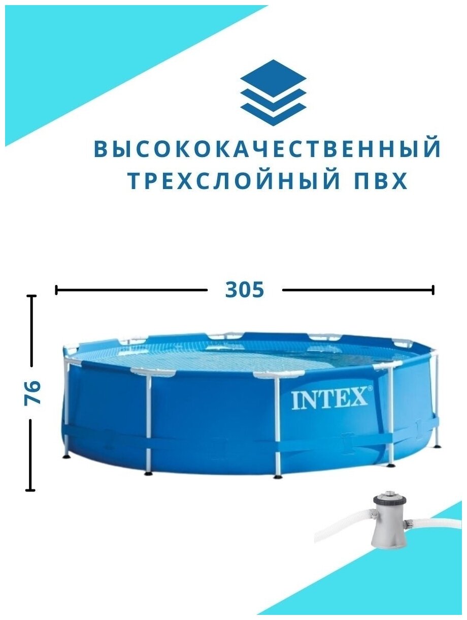 INTEX Каркасный бассейн 28202 Intex Metal Frame 305*76 см, фильтр-насос 28202