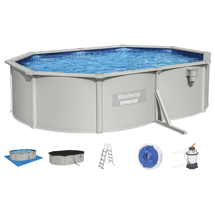 56586 Стальной морозоустойчивый овльный бассейн BestWay, 500х360х120см+фильтр песчаный