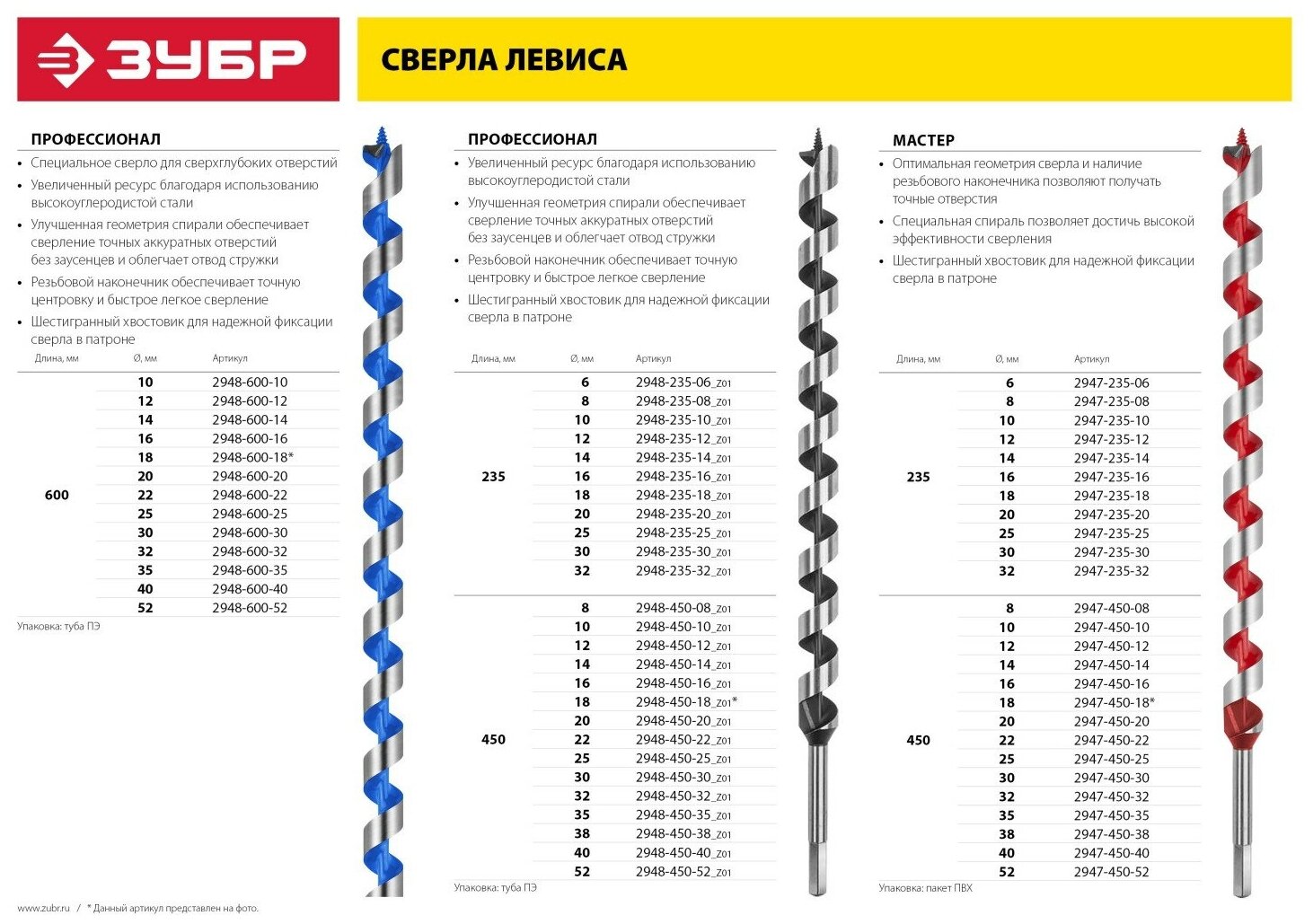 Ниже Вы можете прочитать отзывы на Сверло спираль Левиса 16х235мм Зубр Мастер 2947-235-16, ознакомится с подробными характеристиками, посмотреть интересные обзоры и фотографии на Сверло спираль Левиса 16х235мм Зубр Мастер 2947-235-16.