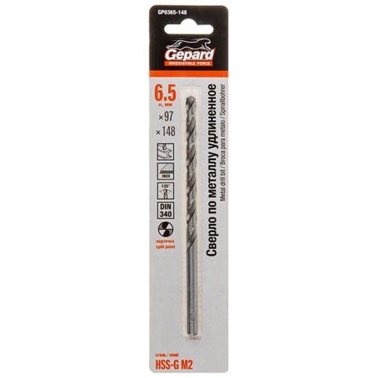 Сверло по металлу ц/х 6.5х97х148 мм удлиненное HSS-G GEPARD (GP0365-148) интересное: