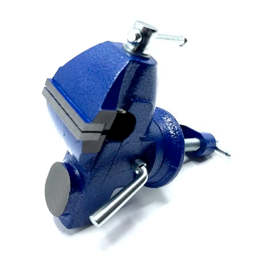 | Плюсы: | Поворотное основание, угол вокруг по вертикальной оси легко фиксируется, есть наковальня. |