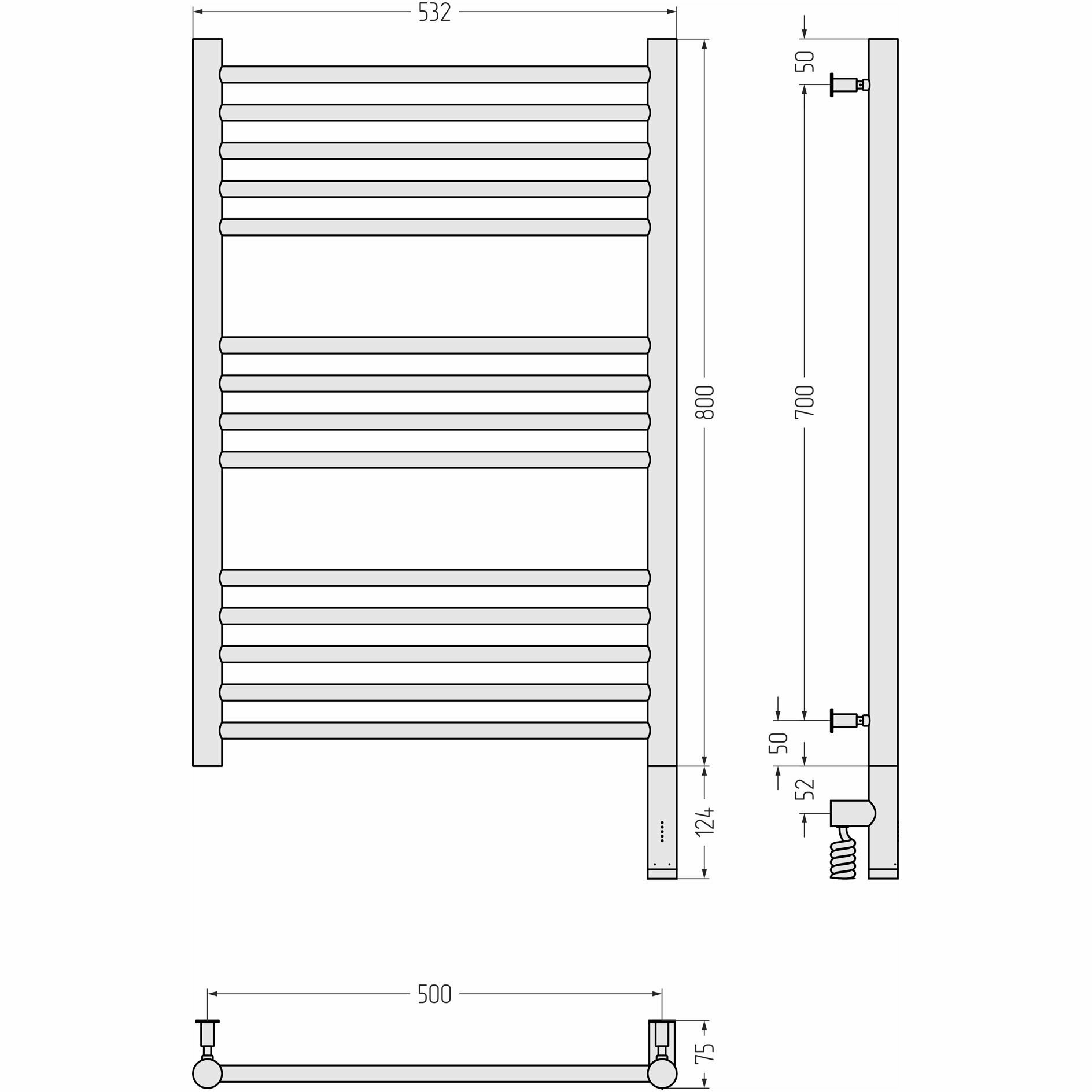 Полотенцесушитель электрический "богема 3.0" прямая 800х500 / МЭМ правый (Без покрытия)