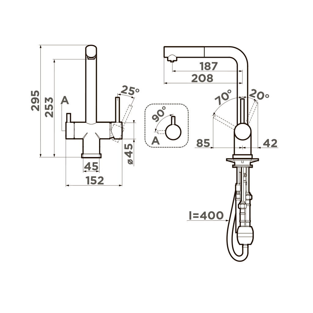 | Плюсы: | 3-и в одном. Смеситель+фильтрованная вода+ выдвижной гибкий излив. |