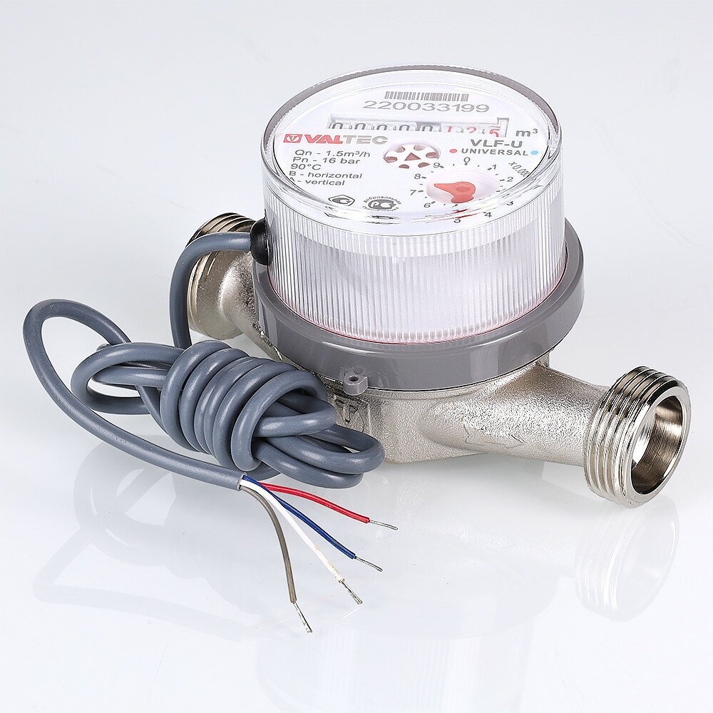 Универсальный квартирный водосчетчик Valtec с импульсным выходом, без сгонов, до +90С, 1.5м3, 1/2, 80 VLF-15U-IL