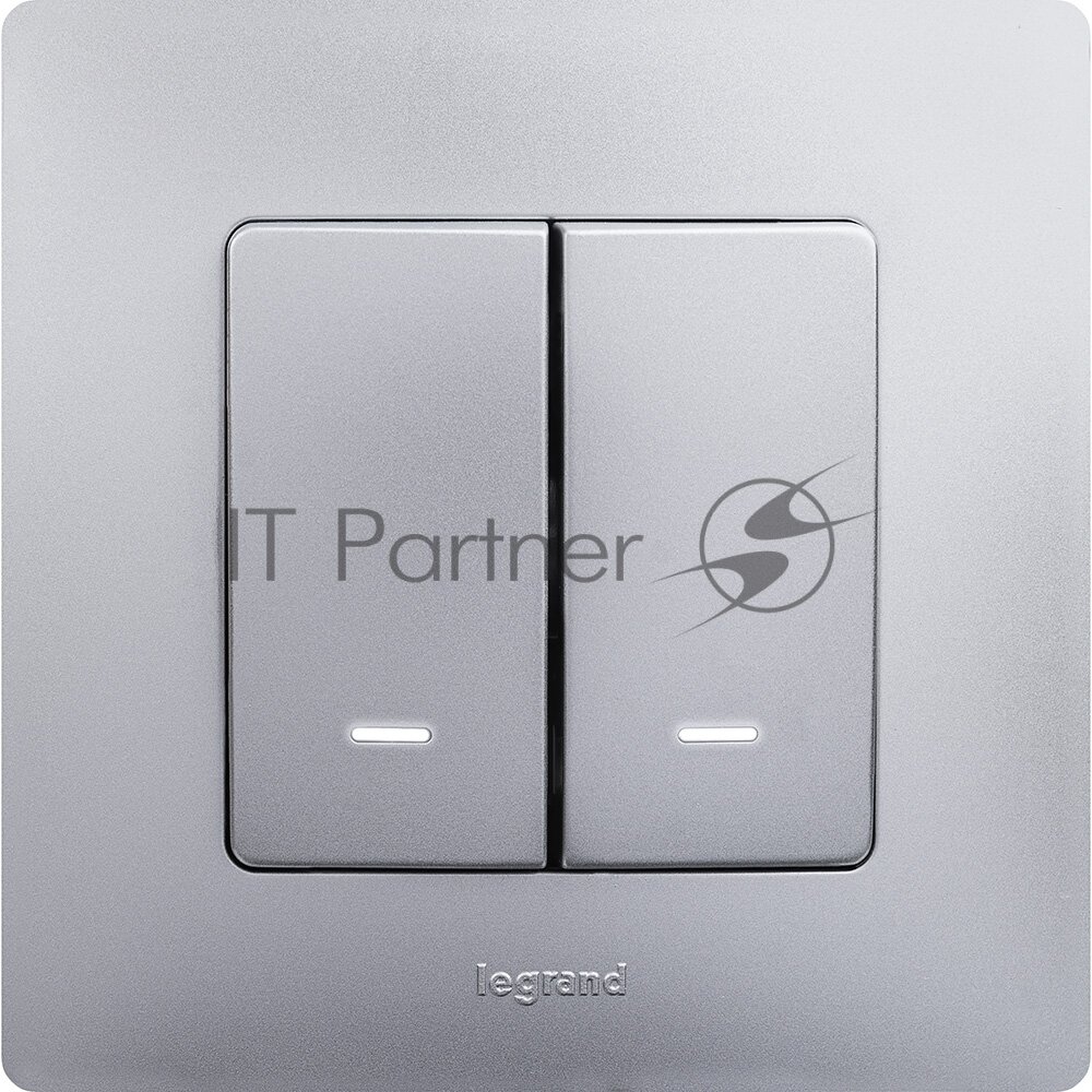 Legrand (Легранд) Выключатель двухклавишный с подсветкой цвета алюминий, Etika 672404