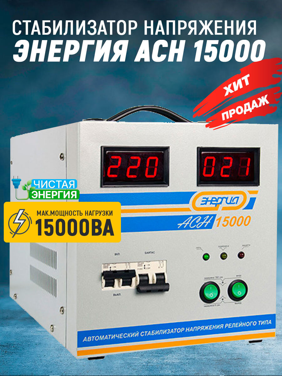 Стабилизатор напряжения однофазный Энергия АСН 15000 / с цифр. дисплеем