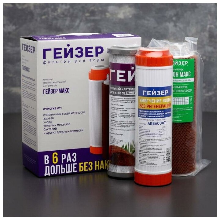 | Отзыв: | По сравнению с обычными комплектами требующими регенерации каждые 3-4 недели - Гейзер Макс гораздо удобнее в использовании. |