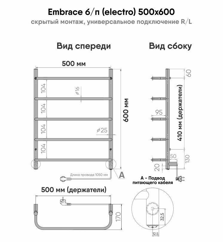 СохранитьПолотенцесушитель электрический INDIGO Embrace 60/50, универсальное подключение, с возможностью скрытого подключения, Черный муар интересное: