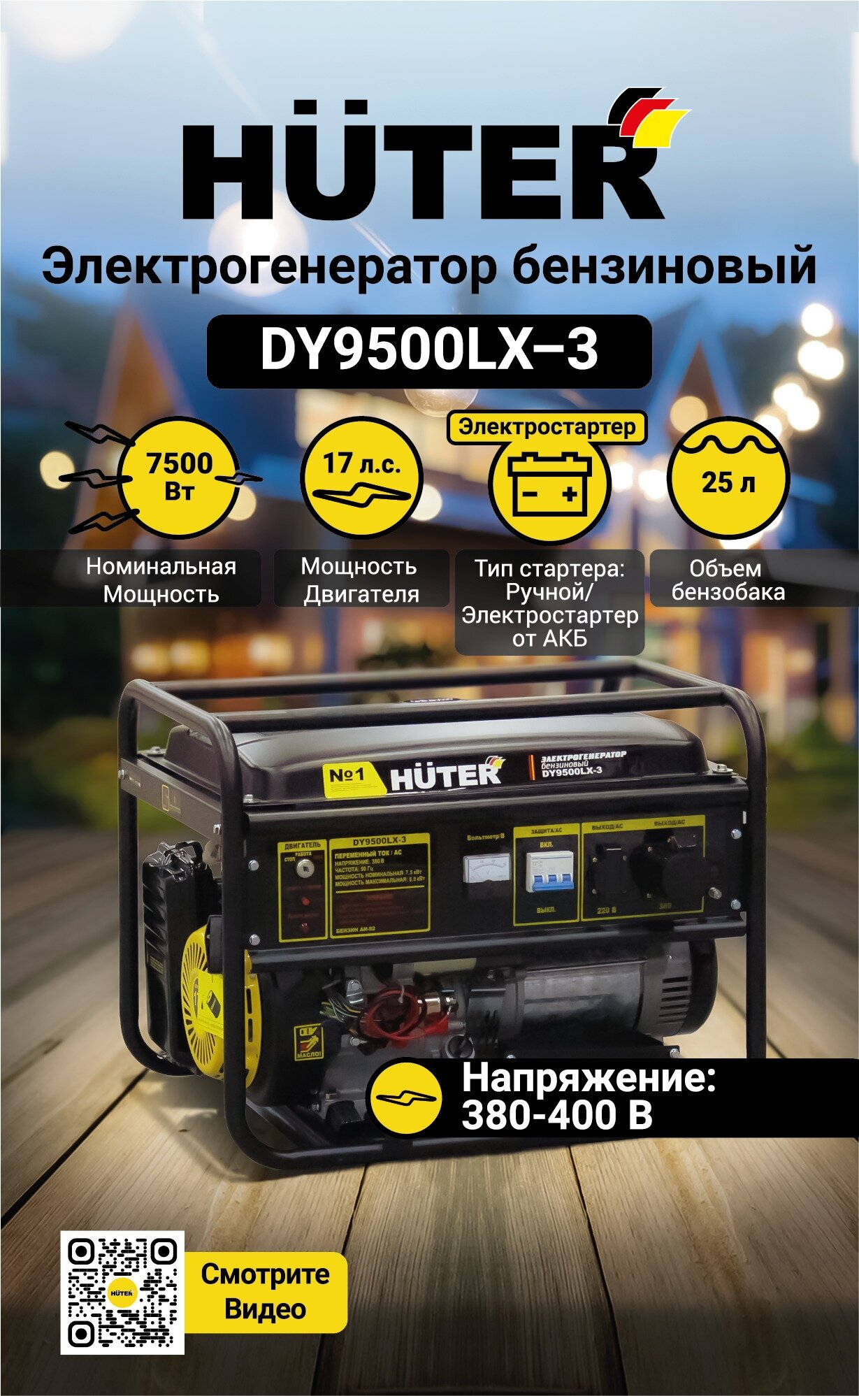 СохранитьБензиновый генератор HUTER DY9500LX-3 интересное: