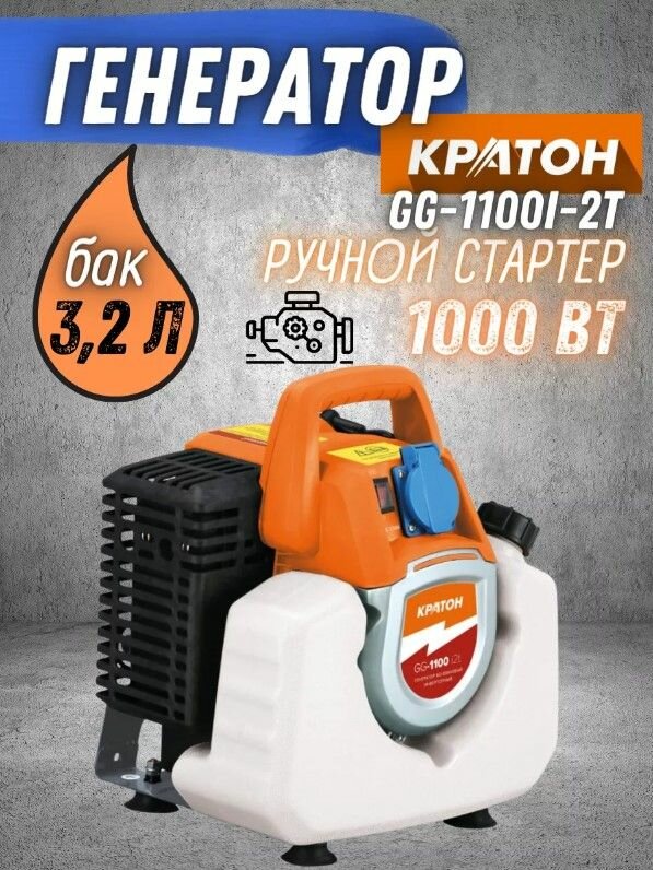 Бензиновый генератор Кратон GG-1100i 2t, (1000 Вт)