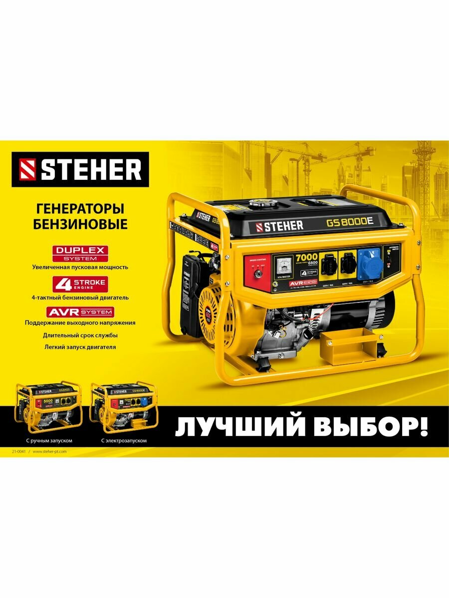 STEHER GS-1500 бензиновый генератор, 1200 Вт, 4 лс двигатель, 220 В, 25 кг