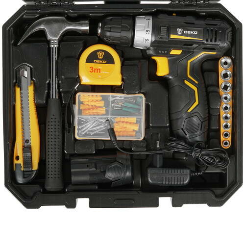 Аккумуляторная дрель-шуруповерт DEKO GCD12DU3 в кейсе + набор 195 инструментов для дома, 12В, 2х1.5Ач