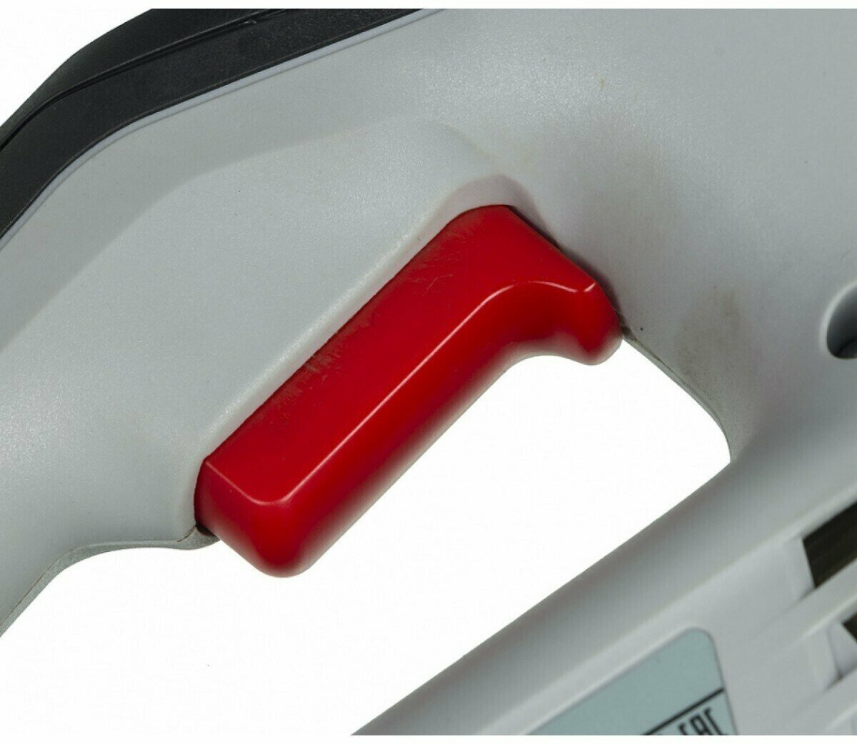 | Плюсы: | Удобная мягкая рукоятка; ровная распиловка, без застревания; функция обдува |