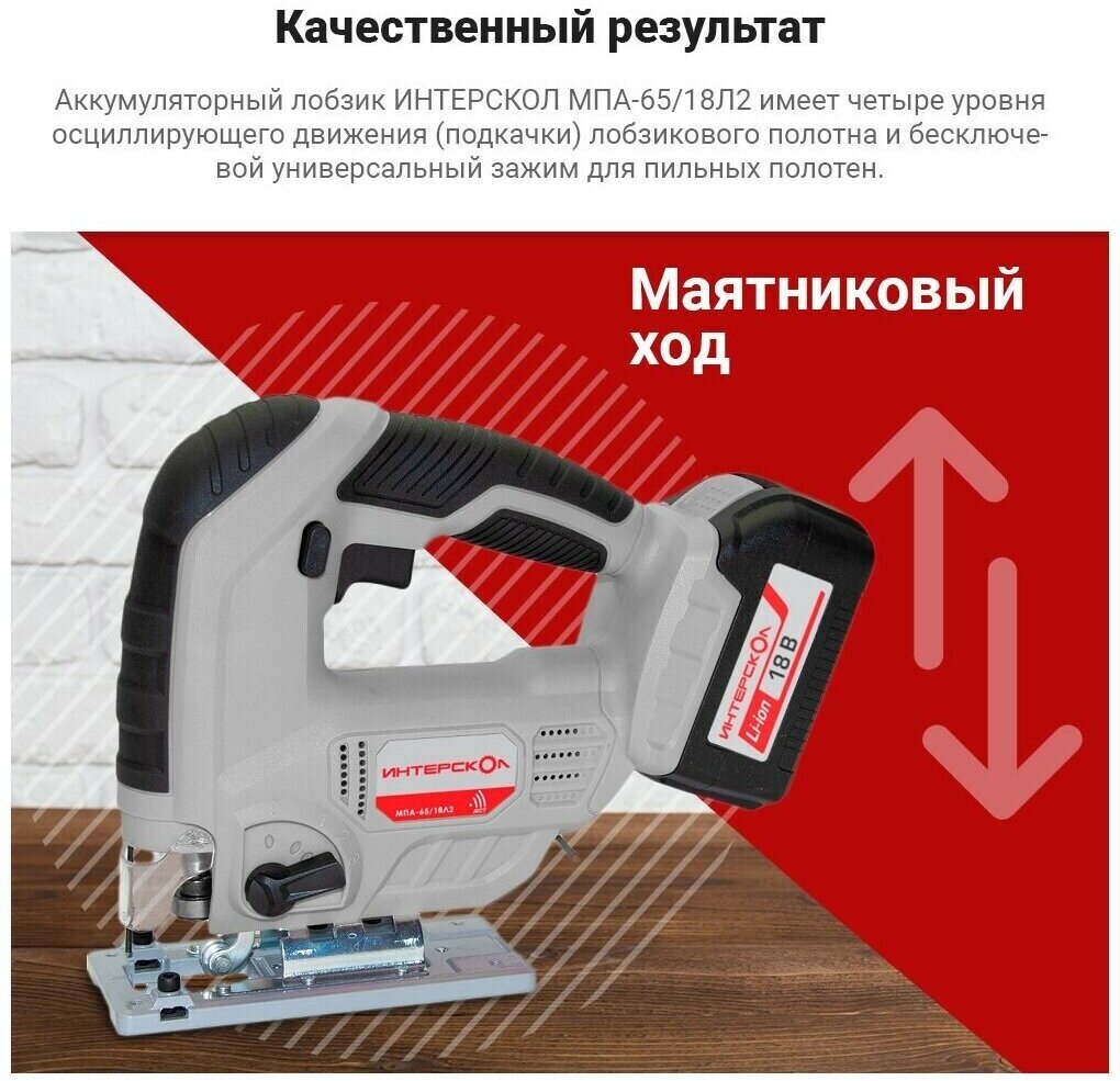 Лобзик аккумуляторный Интерскол МПА-65/18Л2 АПИ