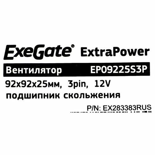 EXEGATE EX283383RUS Вентилятор ExtraPower EP09225S3P, 92x92x25 мм, подшипник скольжения, 3pin, 2200RPM, 24dBA