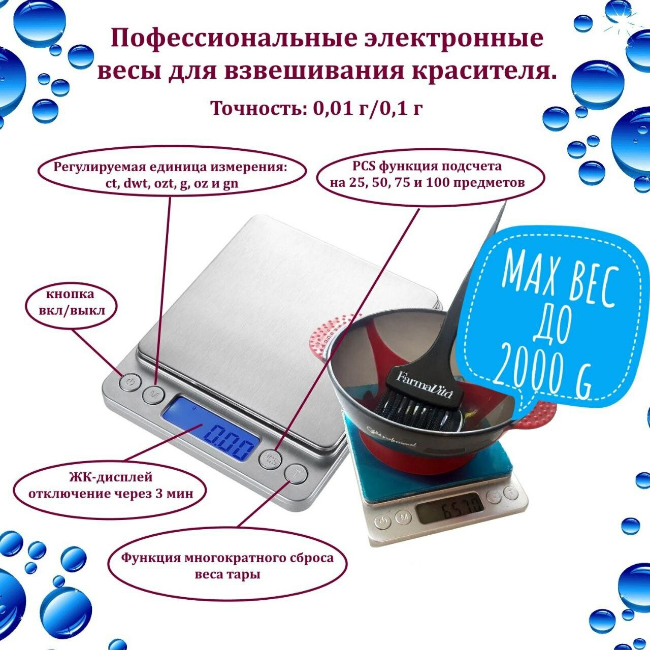 Электронные весы Professional Digital Весы парикмахерские до 2000 г, Весы парикмахерские до 2000 г, 1 шт