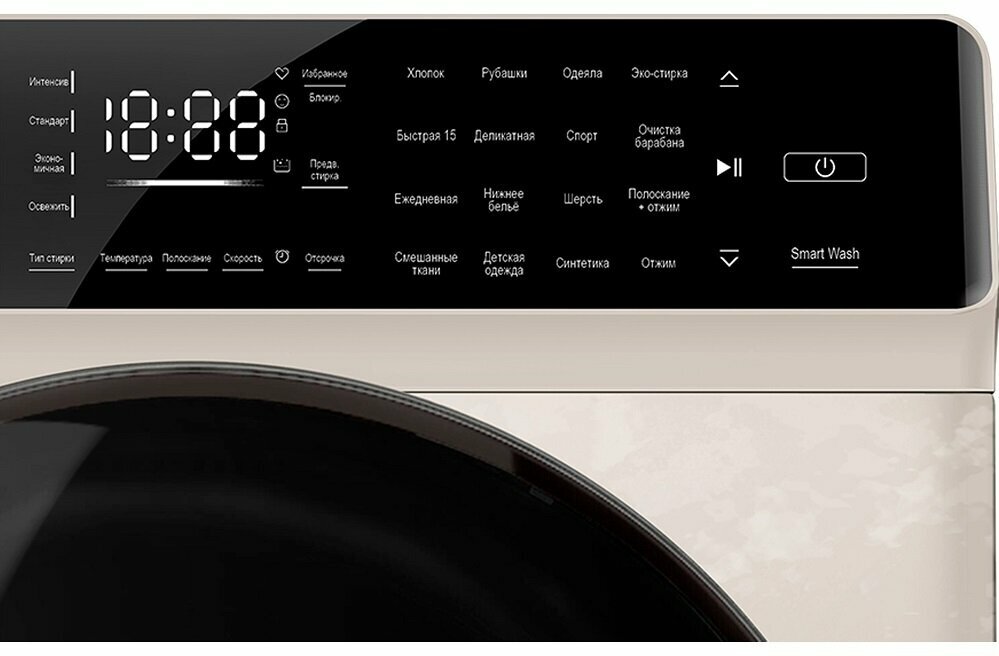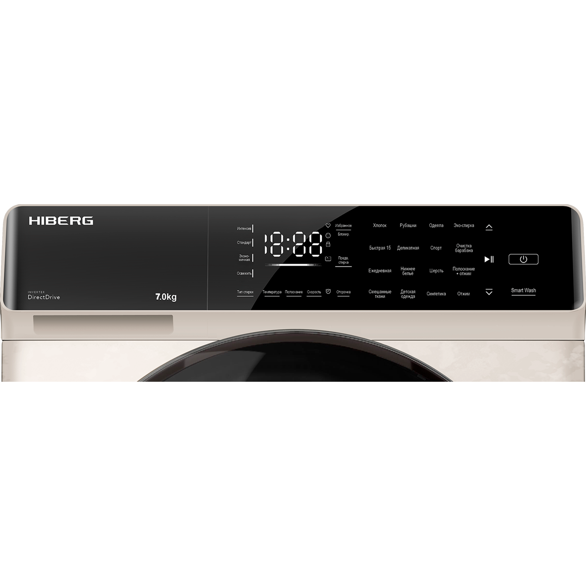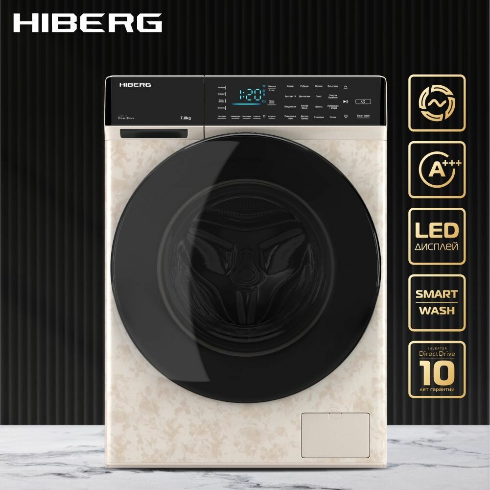 Стиральная машина HIBERG i-DDQ9 - 712 Ym, инверторная, 7 кг загрузка, 1200 об/мин, 16 программ, Smart wash, таймер, прямой привод, бежевый мрамор