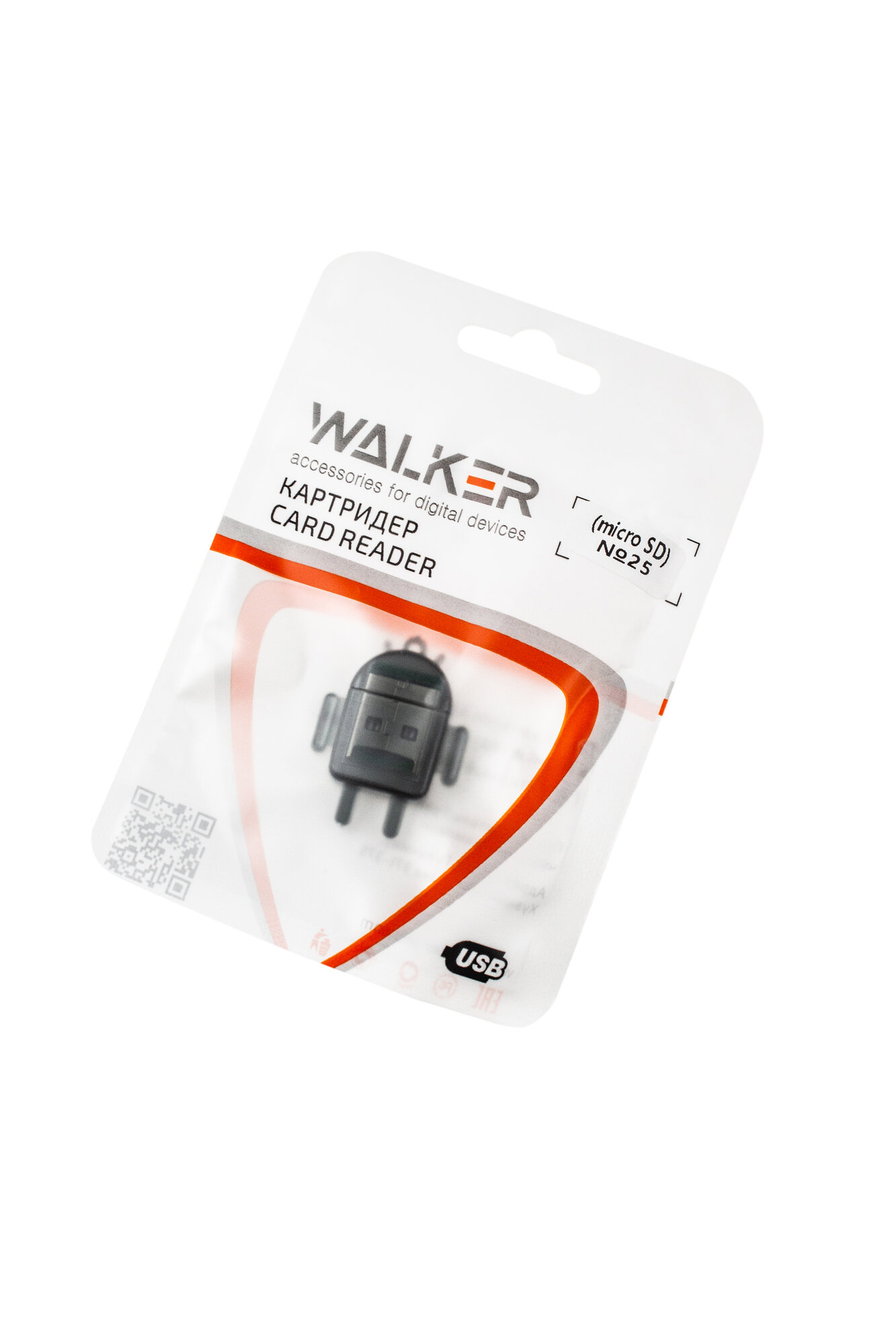 Картридер, WALKER, WCD-25, подключение к USB, картридер microsd usb, картридер microsd, адаптер для карты памяти sd на usb, кардридер sd карт, черный