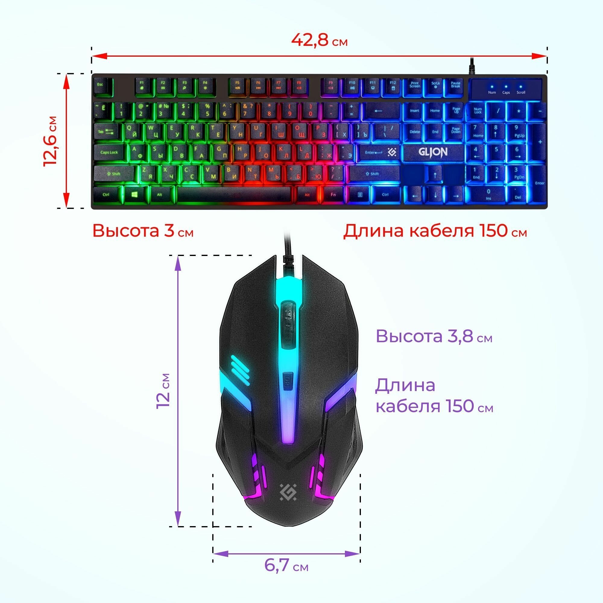 Игровой набор Defender Glion C-123 RU, Light, мышь, клавиатура (45123) .