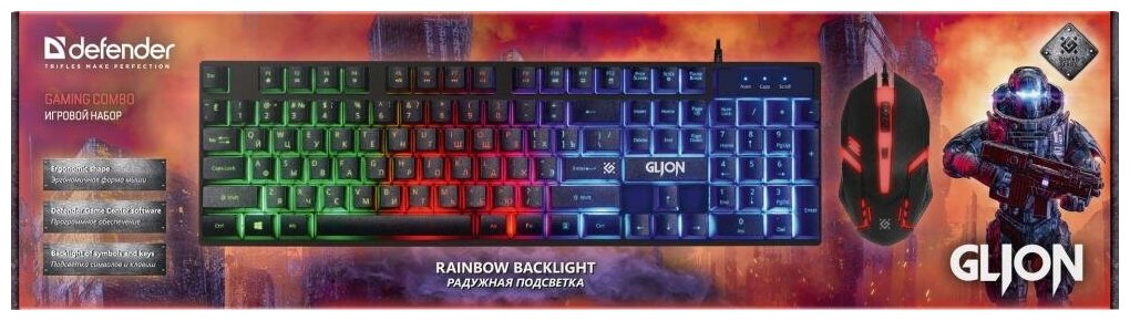 Комплект игровой Defender Glion C-123 RU,Light,мышь+клавиатура, радужная подсветка(45123)
