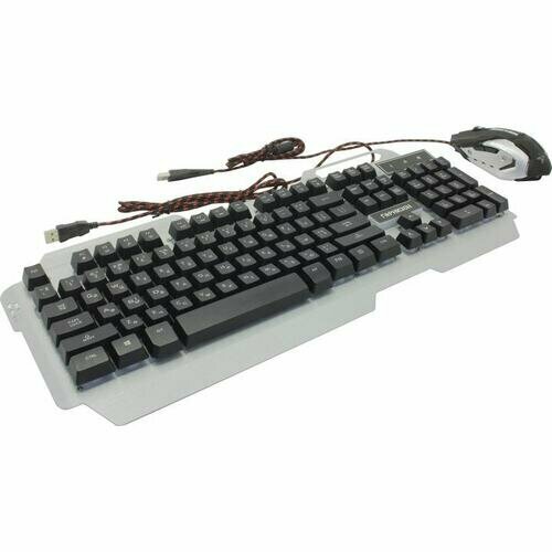 Клавиатура и мышь игровые Гарнизон GKS-510G проводной комплект, металл, подсветка, серебристо-черная
