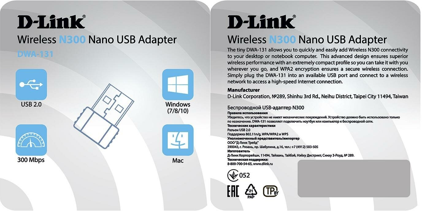 Адаптер Wi-Fi D-link DWA-131 802.11n, USB (DWA-131/F1A) интересное: