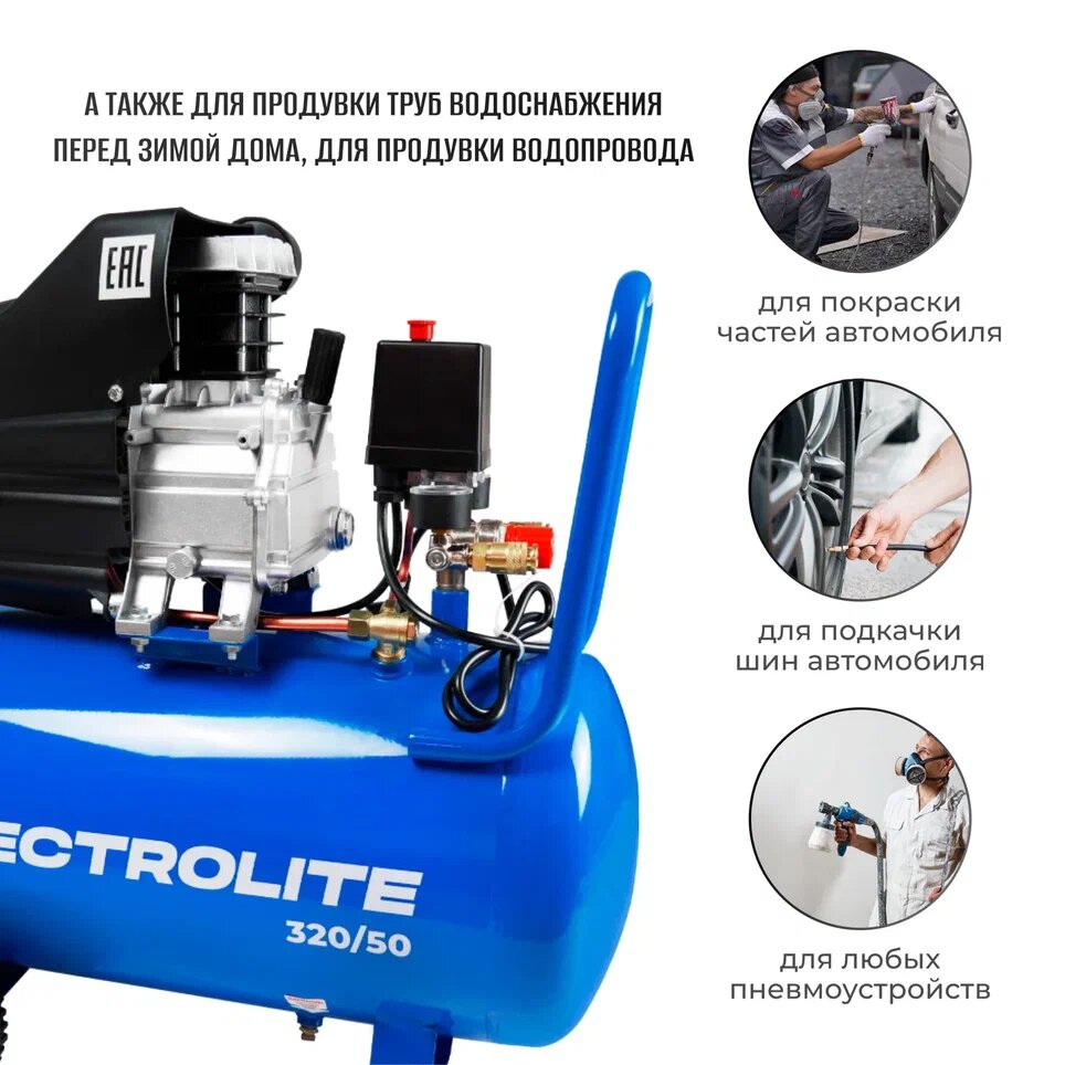 Ниже Вы можете прочитать отзывы на Компрессор бытовой пневматический поршневой воздушный масляный для гаража ELECTROLITE 320/50 (ресивер 50 литров, 320 л/мин, 2000 Вт, 8 Атм, электрический, 2850 об./мин, 220В, передвижной, цилиндровый), ознакомится с подробными характеристиками, посмотреть интересные обзоры и фотографии на Компрессор бытовой пневматический поршневой воздушный масляный для гаража ELECTROLITE 320/50 (ресивер 50 литров, 320 л/мин, 2000 Вт, 8 Атм, электрический, 2850 об./мин, 220В, передвижной, цилиндровый).