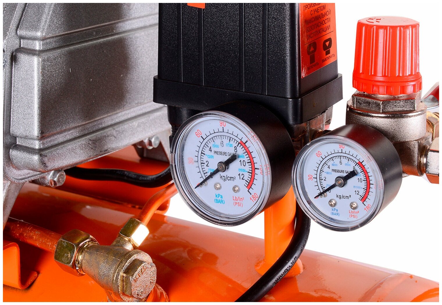 Компрессор покупал для пневмоинструмента. Параметры соответствуют. Могу использовать инструмент до 8 бар из производительности до 500 литров в минуту. Короче, такой набор у меня: гайковерт, пневмопистолет, дрель и ножницы и пневматический пресс. Поглядываю еще в сторону шлифмашины. Работает нормально. Давление держит стабильное. Контроль осуществляется через смотровое окошечко и манометр.