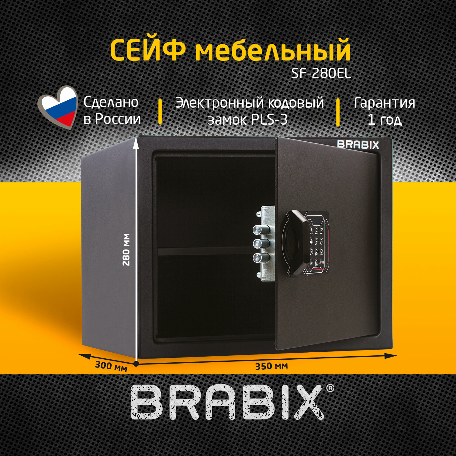 Сейф мебельный BRABIX "SF-280EL", 280х350х300 мм, электронный замок, черный, 291149, S103BR212414 Комплект : 1 шт