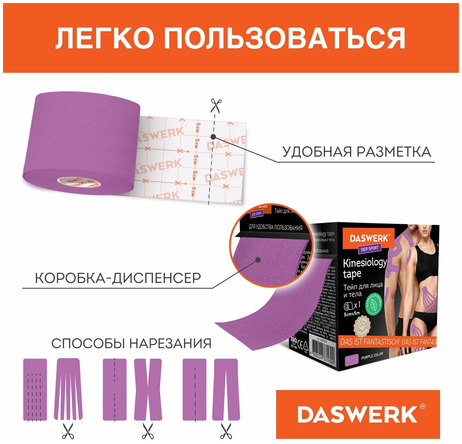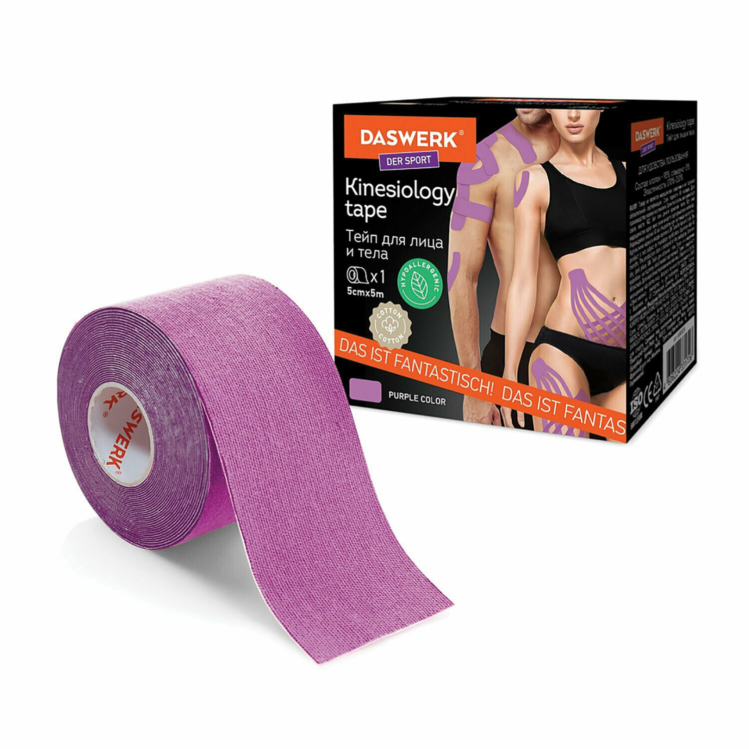 Кинезио тейп DASWERK 5см, 5м, р. 5 см x 5 м (5 - 5 см), фиолетовый
