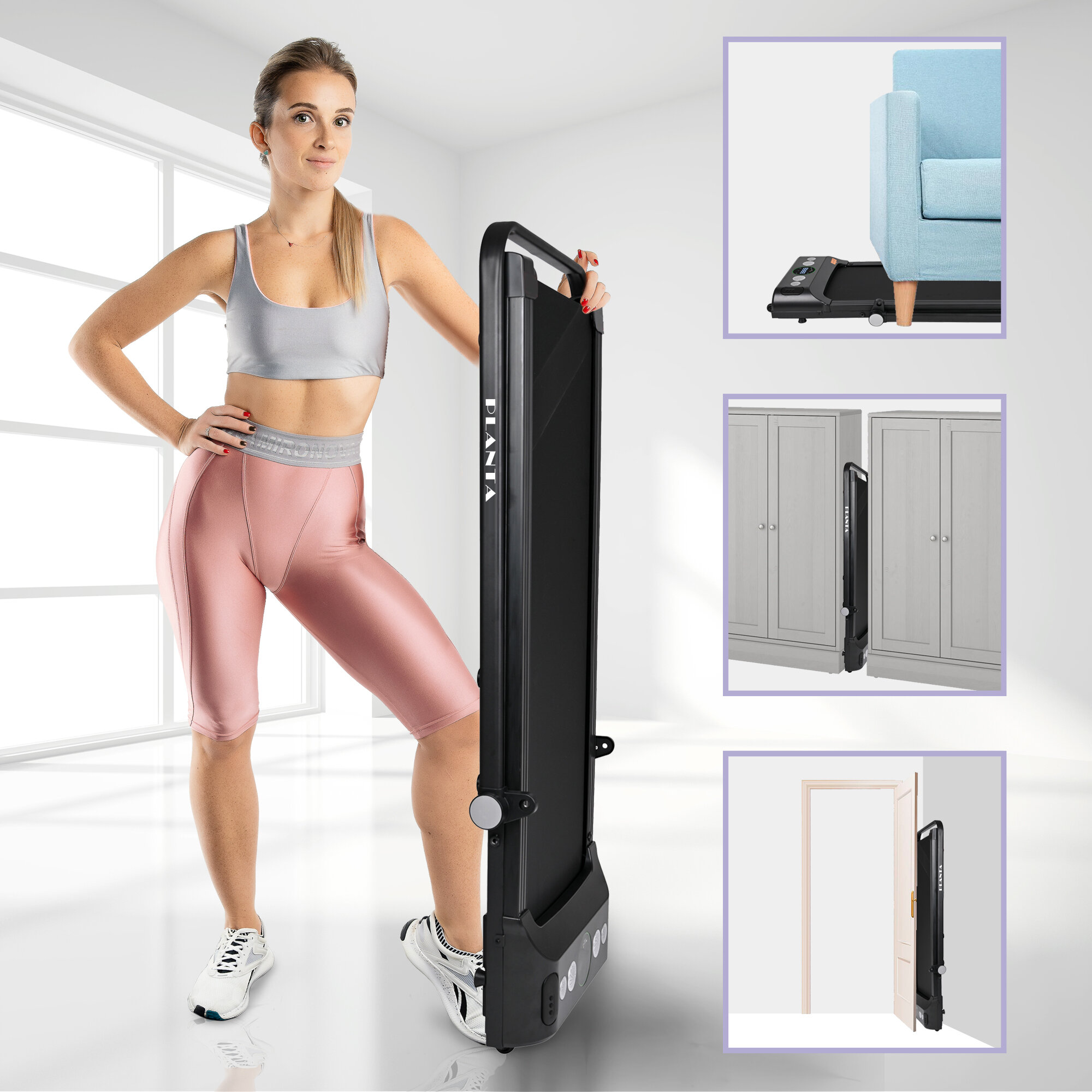 Купить PLANTA Ультратонкая и компактная беговая дорожка TM-300, LED-дисплей, складной поручень, до 12 км/ч, пульт ДУ