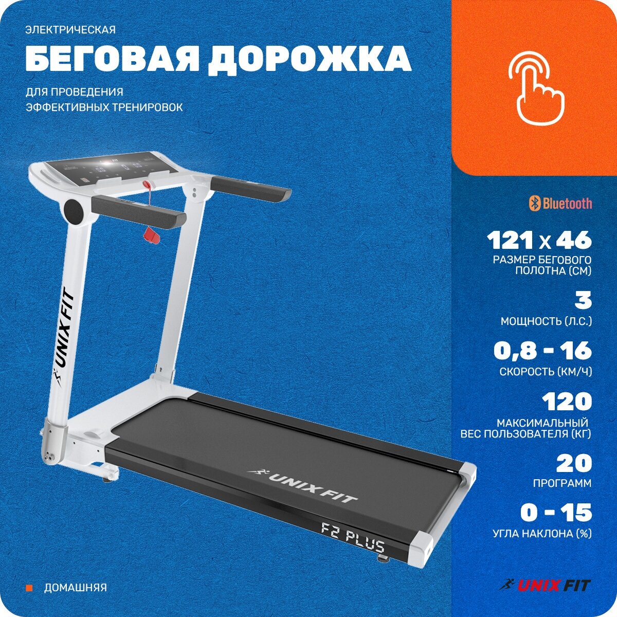 Купить Беговая дорожка UNIXFIT Hi-tech F2 PLUS Arctic Ice + коврик, No Touch Control, 2,5 л. с, до 120 кг, скорость 0.8 - 16 км/ч, угол наклона электр. 0-15%
