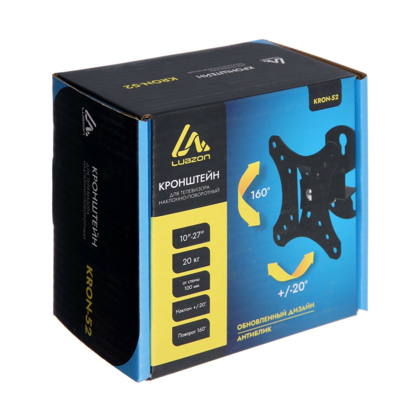 Кронштейн Luazon KrON-52, для ТВ, наклонно-поворотный, 10-27", до 20 кг, черный 1898161