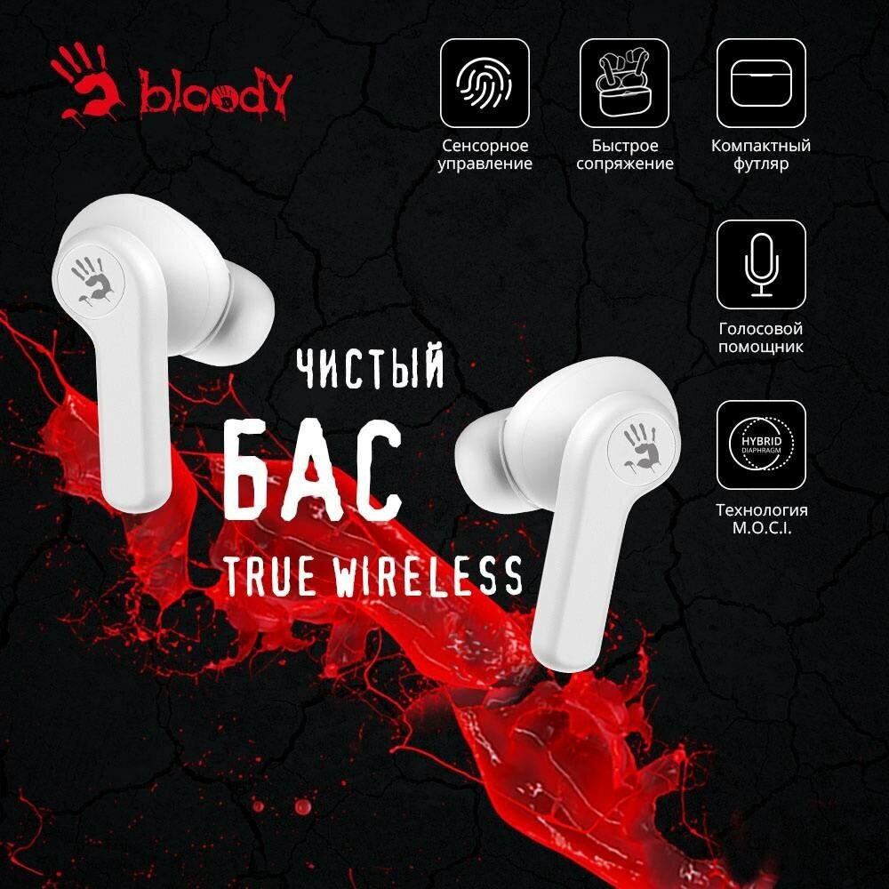 Гарнитура вкладыши A4Tech Bloody M30 white беспроводные bluetooth (M30 (WHITE))