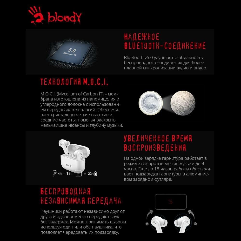 A4Tech Bloody M30 белый вкладыши BT в ушной раковине (m30) .