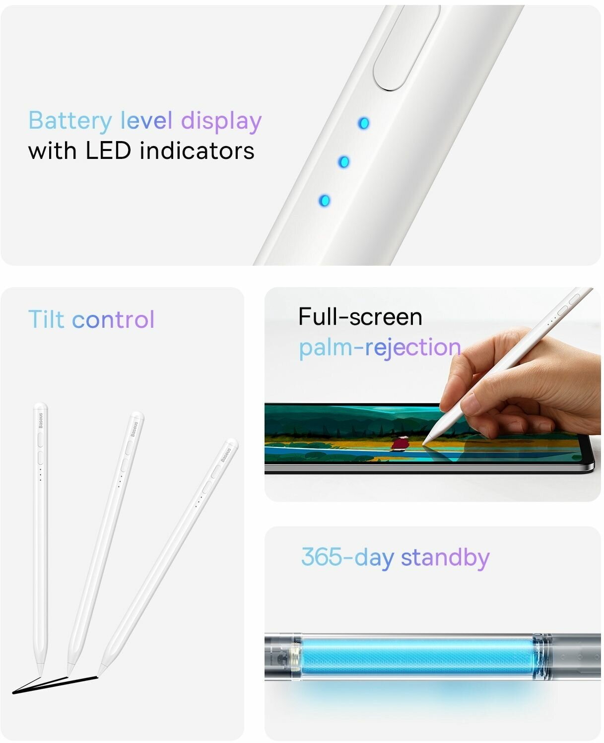 Стилус BASEUS Smooth Writing Capacitive with LED Indicators, белый