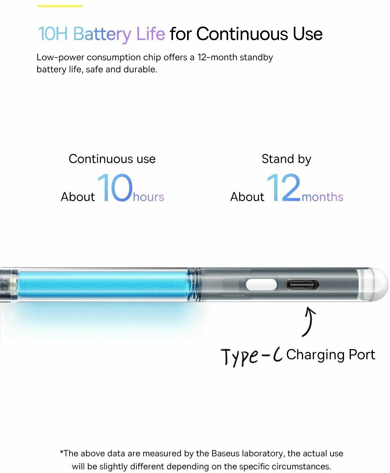 Стилус Baseus Smooth Writing Active Stylus with LED Indicators (Including: Universal Type-C data cable 3A 0.3m x 1 + Active tip x 1) (SXBC000202)